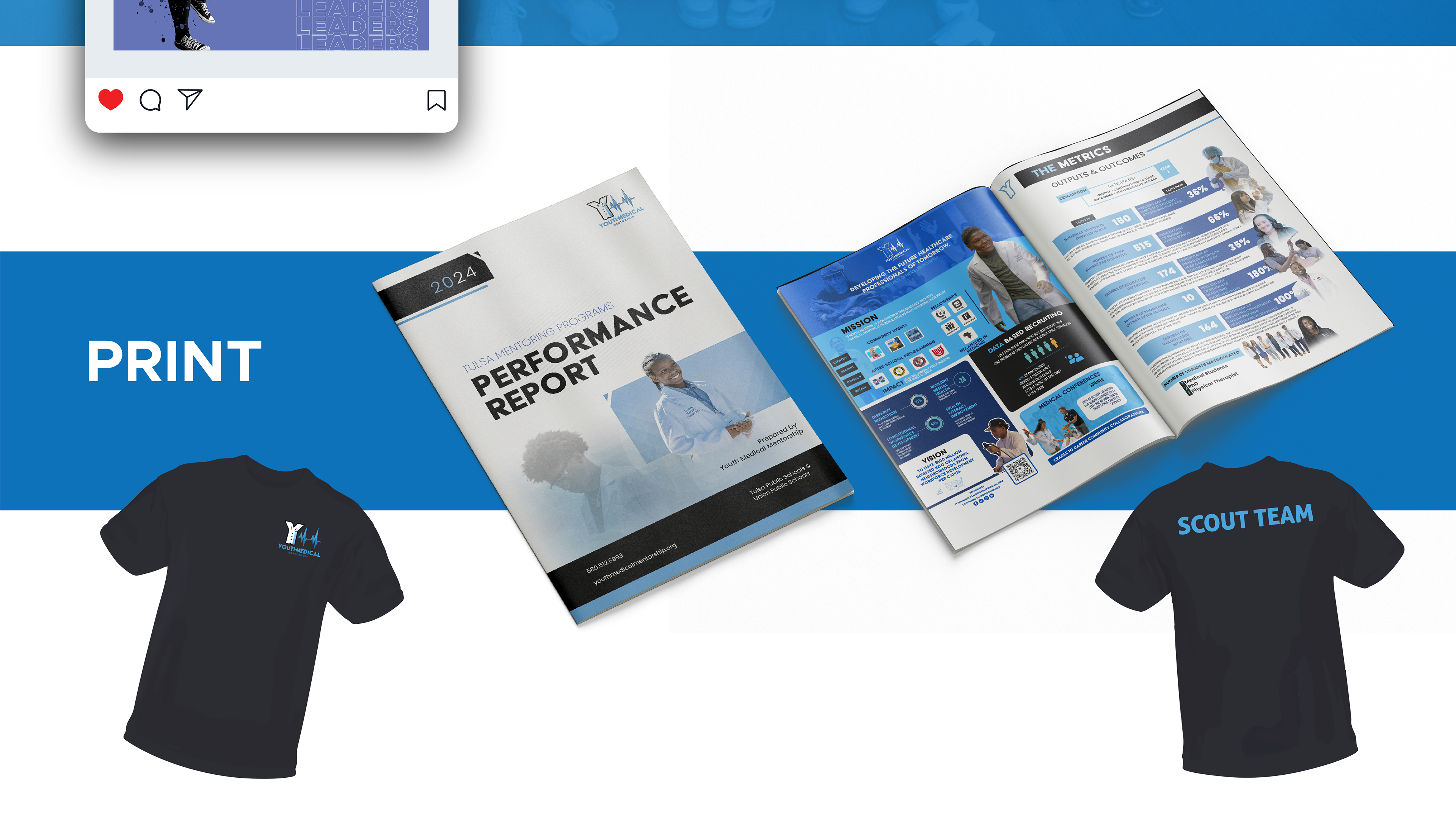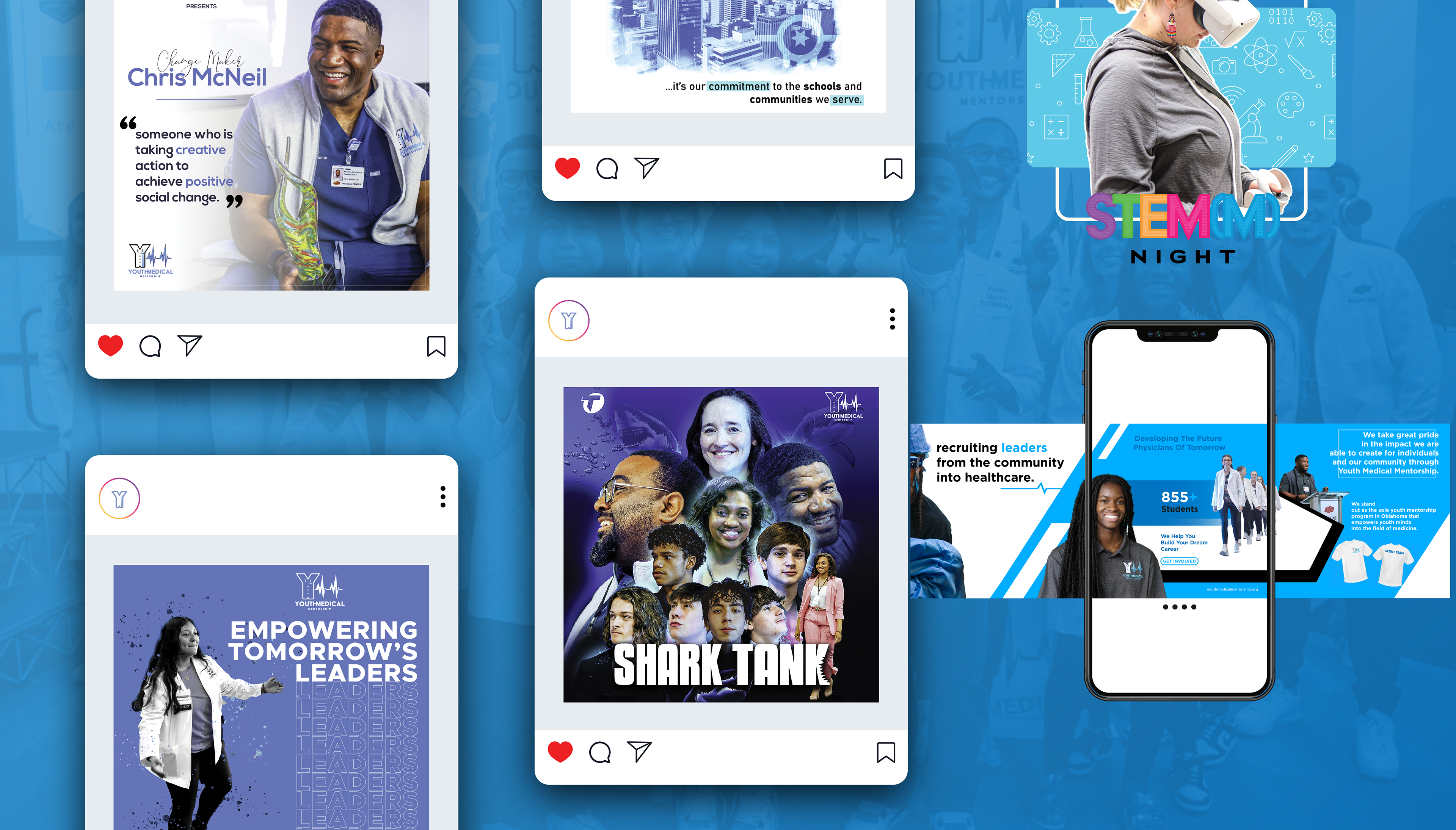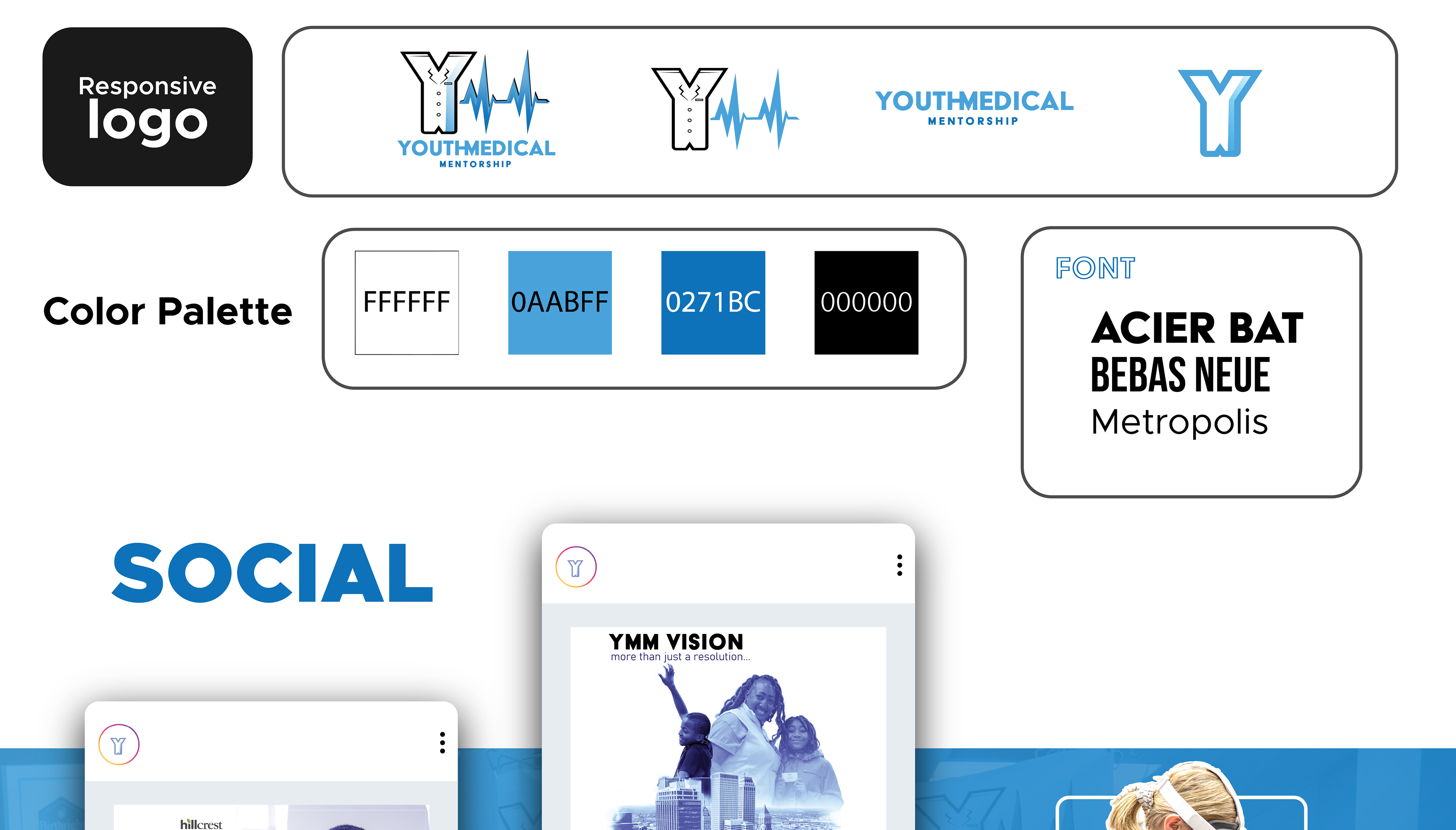 The goal with this logo and visual identity was to create something that would represent the mission of the organization, seeing the urban youth end up in white coats, and yet be bold and appealing to the youth and sports driven audience to spark the idea of recruiting doctors in the way athletes are recruited.